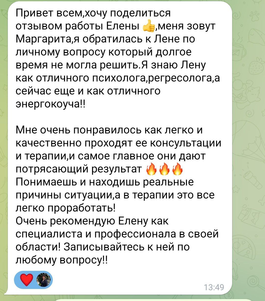 У меня 2 высших образования. Первое высшее образование получила в БГУ в 2011 году по специальности биолог (микробиолог). Более 12 лет работала по специальности на предприятии. Из них 7 лет начальником лаборатории. За время работы сменила 4 города проживания, 9 мест работы в разных структурах компании. В 2021 году приняла решение получить диплом психолога и сразу начала проходить активную личную терапию, так как прекрасно понимала, что только психолог, прошедший глубокую личную терапию, может дать пользу и быстрый результат клиенту.