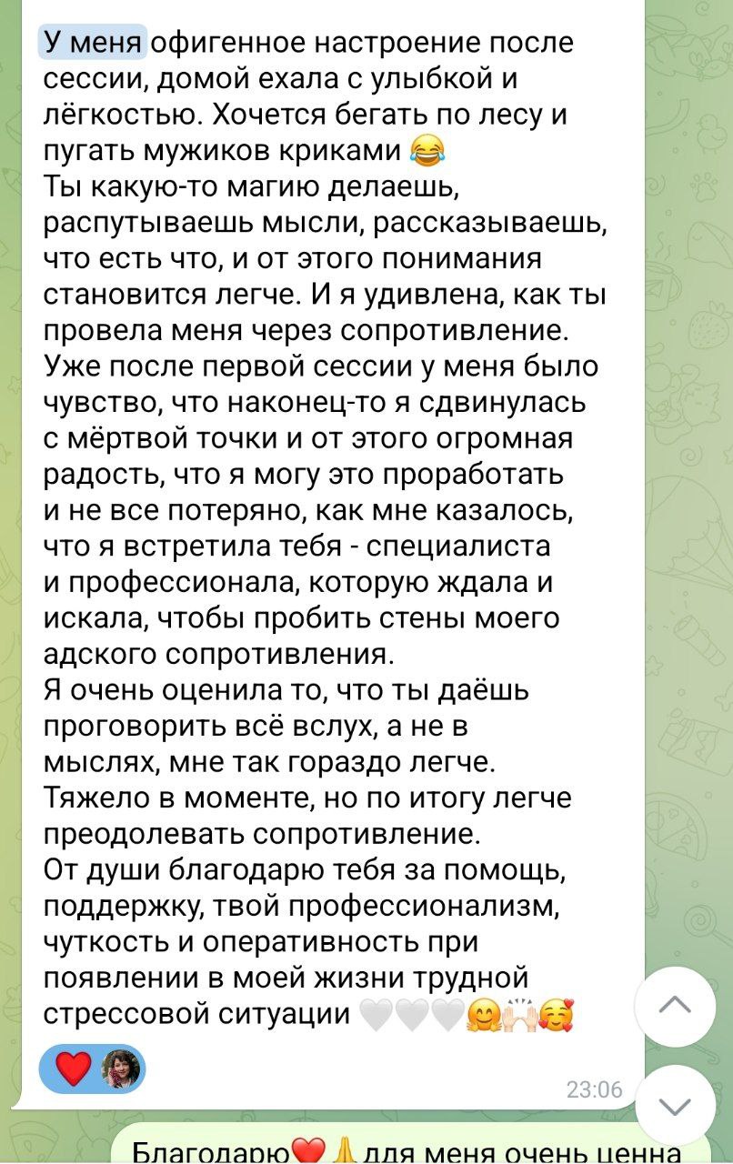Я за быстрый результат в терапии, а не бесконечное хождение кругами без результата на протяжении долгих лет.